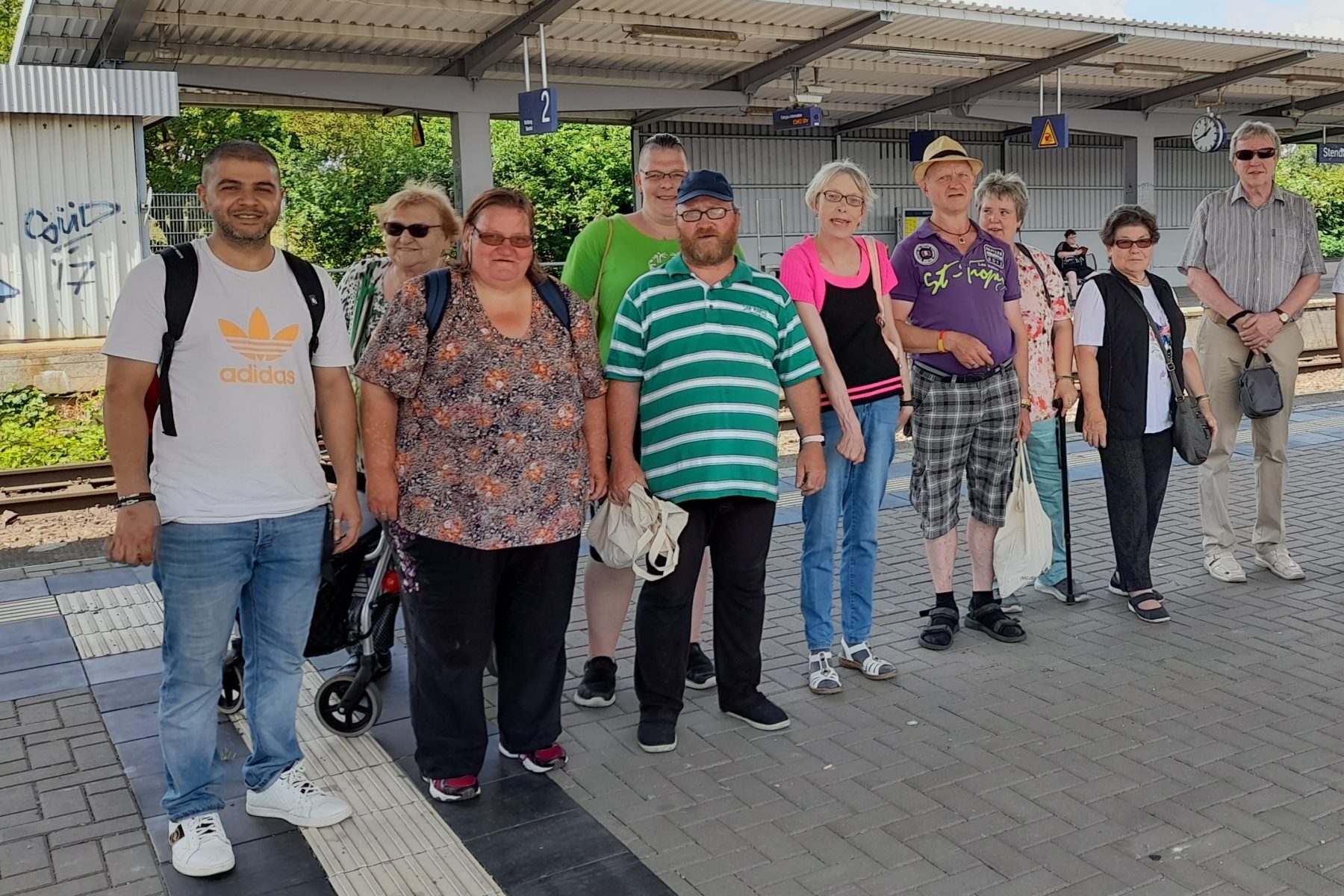 Das sozialräumliche Ausgreifen des Offenen Treffs über das Stadtteilbüro und den Stadtsee hinaus hat die Gruppe auch auf den Campus der Hochschule Magdeburg-Stendal geführt. Anlass war das Einweihungsfest des neuen Bahnhofs, der den Stadtsee nun mit dem Campus verbindet. Der Bahnhof Stadtsee ist seit 1975 kaum verändert und somit nicht barrierefrei. Er erschwert die Reise für körperlich beeinträchtige Teilnehmer*innen erheblich – ganz im Gegensatz zum barrierefreien Bahnhof am Campus. Genauso gegensätzlich fällt der Vergleich des baulichen Zustands aus – Verfallserscheinungen hier, vollkommen neue und moderne Bauweise dort. Auf dem Einweihungsfest wurde die Gruppe z. T. mit irritierten und bewertenden Blicken empfangen. Hintergrund sind wechselseitig wahrnehmbare habituelle Differenzen (in Kleidung, Auftreten, Sprachausdruck und Lautstärke). Die symbolische Abwertung löste in der Gruppe Gefühle von Ablehnung, Scham und Wut aus, die vor Ort benannt und besprochen wurden. Dadurch konnte sie als kollektive Erfahrung ungerechtfertigter Abwertung verstanden werden. Im leeren Audimax wurde über den Wert von Bildung und die einzelnen Bildungswege der Teilnehmer*innen gesprochen. Dabei bestätigte sich, dass der Stendaler Campus kein vertrauter Ort für die Teilnehmer*innen ist. Trotz der Ausgrenzungserfahrung wurde beschlossen, zukünftig gemeinsam eine Vorlesung zu besuchen. Zudem entstand die Idee für eine weitere Exkursion zur Gedenkstätte Feldscheune Isenschnibbe, wo kurz vor Kriegsende etwa eintausend Zwangsarbeiter auf Veranlassung des NSDAP-Kreisleiters und unter Beteiligung eines Teils der lokalen Bevölkerung grausam ermordet wurden. Die Museumspädagogen bereiteten in Absprache mit dem Team eine auf die Gruppe zugeschnittene Führung vor. Durch die Reise und die Führung erschlossen sich die Teilnehmer*innen neue historisch-politische Bildungsräume in ihrer Region.