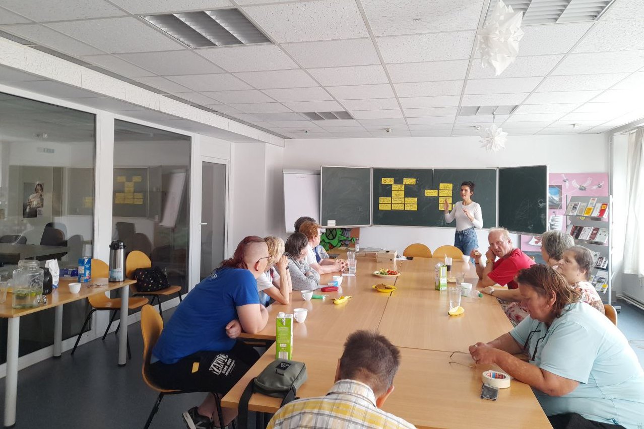 Als Beispiel der vertiefenden politischen Bildung im Offenen Treff kann ein Angebot genannt werden, das über politische Teilhabemöglichkeiten sowie Funktionsweisen und Aufgaben des Stendaler Stadtrats und des Oberbürgermeisters (OB) informierte. Dazu wurde der OB in den Offenen Treff eingeladen. Da auf Grund von symbolischen Machtverhältnissen die Teilnehmer*innen im Zusammentreffen mit dem OB vermutlich nicht den Mut aufbringen würden zu sprechen, wurden sie gebeten, ihre Anliegen in kleinen Briefchen zu formulieren und in eine Urne zu werfen. Der OB kam der Einladung nach und wie erwartet war die Mehrheit sprachlos, weshalb die Briefe durch das Team vorgelesen wurden. Anliegen wie die mangelnde Barrierefreiheit der Gehwege wurden seitens des OB notiert und die Begegnung inspirierte ihn dazu, eine regelmäßige Sprechstunde in Stadtsee abzuhalten. In Planung ist derzeit, mit der Gruppe ins Rathaus zu gehen und den Arbeitsort des OB und seiner Verwaltung anzuschauen sowie eine Sitzung des Stadtrats zu besuchen, um das Verständnis kommunalpolitischer Prozesse und politischer Teilhabemöglichkeiten zu vertiefen.