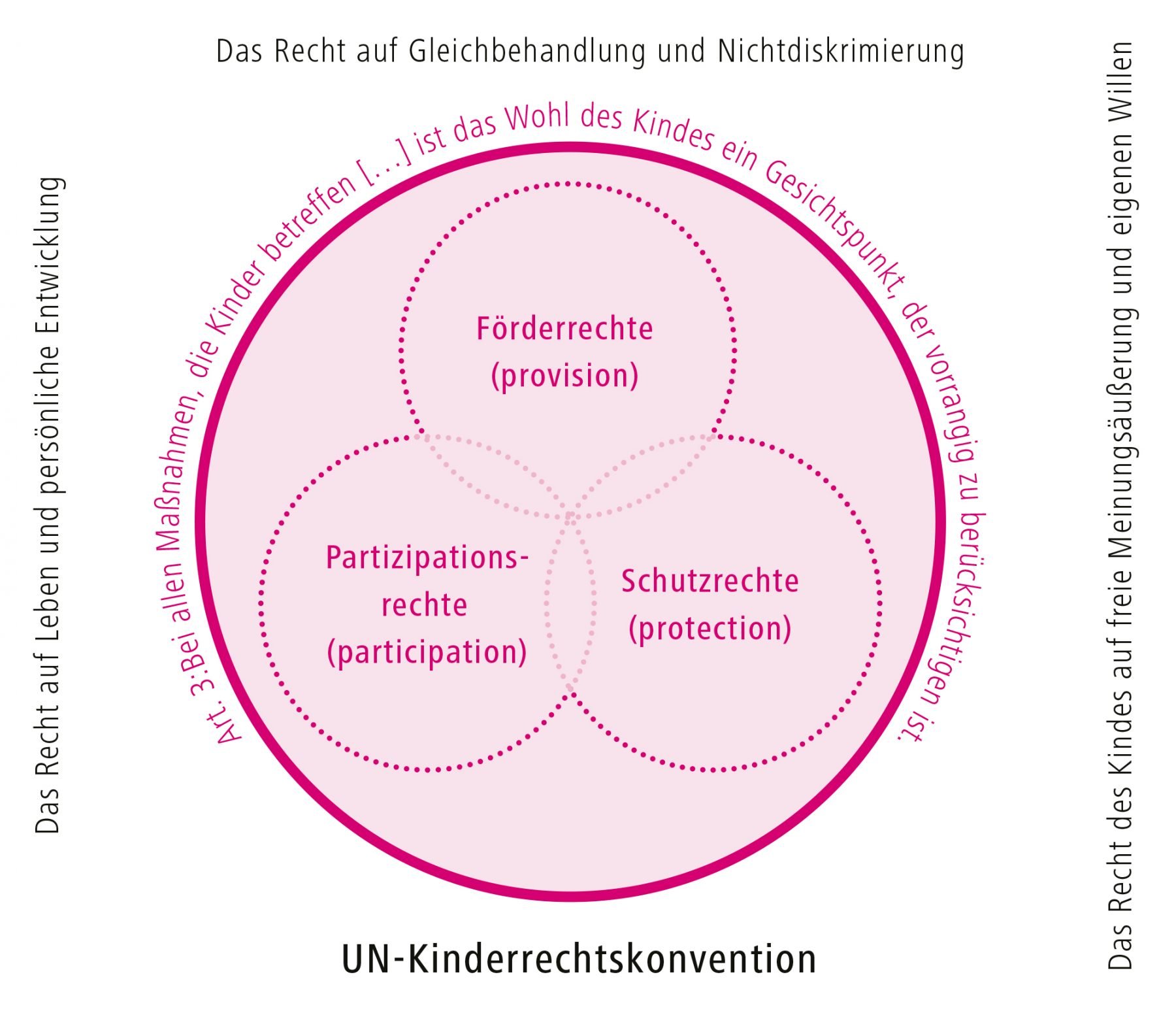 Am 20. November 1989 hat die Generalversammlung der Vereinten Nationen das „Übereinkommen über die Rechte des Kindes“ (UN-KRK) verabschiedet. Die UN-Kinderrechtskonvention umfasst in ihrem Verständnis von „Kind“ alle 0–18jährigen Menschen. Die Grundsäulen der UN-Kinderrechtskonvention bilden die Förder-, Schutz- und Beteiligungsrechte. Aufgrund ihrer engen Verbindung und dem Umstand, dass die Beeinträchtigung eines Rechts meist Einschränkungen eines anderen Rechts bedingt, sind sie gleichsam zu verwirklichen. Im Zentrum der Konvention steht die Anerkennung von Kindern als Träger von Menschenrechten. Der Staat hat in all seinem Handeln das beste Interesse von Kindern beziehungsweise des individuell betroffenen Kindes zu berücksichtigen. Die Umsetzung der Kinderrechtskonvention ist Aufgabe der Vertragsstaaten in ihren jeweiligen Staatsgebieten.