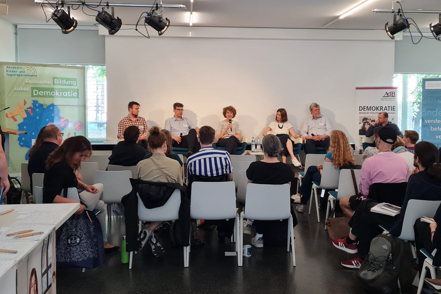 In der anschließenden Fishbowl wies Ina Bielenberg angesichts der aktuellen Wahlerfolge einer rechtspopulistischen Partei darauf hin, dass politische Bildung nicht neutral sei und sich an demokratischen Werten orientiere. Zum Erhalt demokratischer Handlungsfähigkeit müsse sie einerseits zur Beteiligung an und zum Vertrauen in demokratische Institutionen beitragen. Andererseits müsse sie den Rechtsruck thematisch aufgreifen, kritisch diskutieren und menschenverachtenden Positionen deutlich widersprechen.