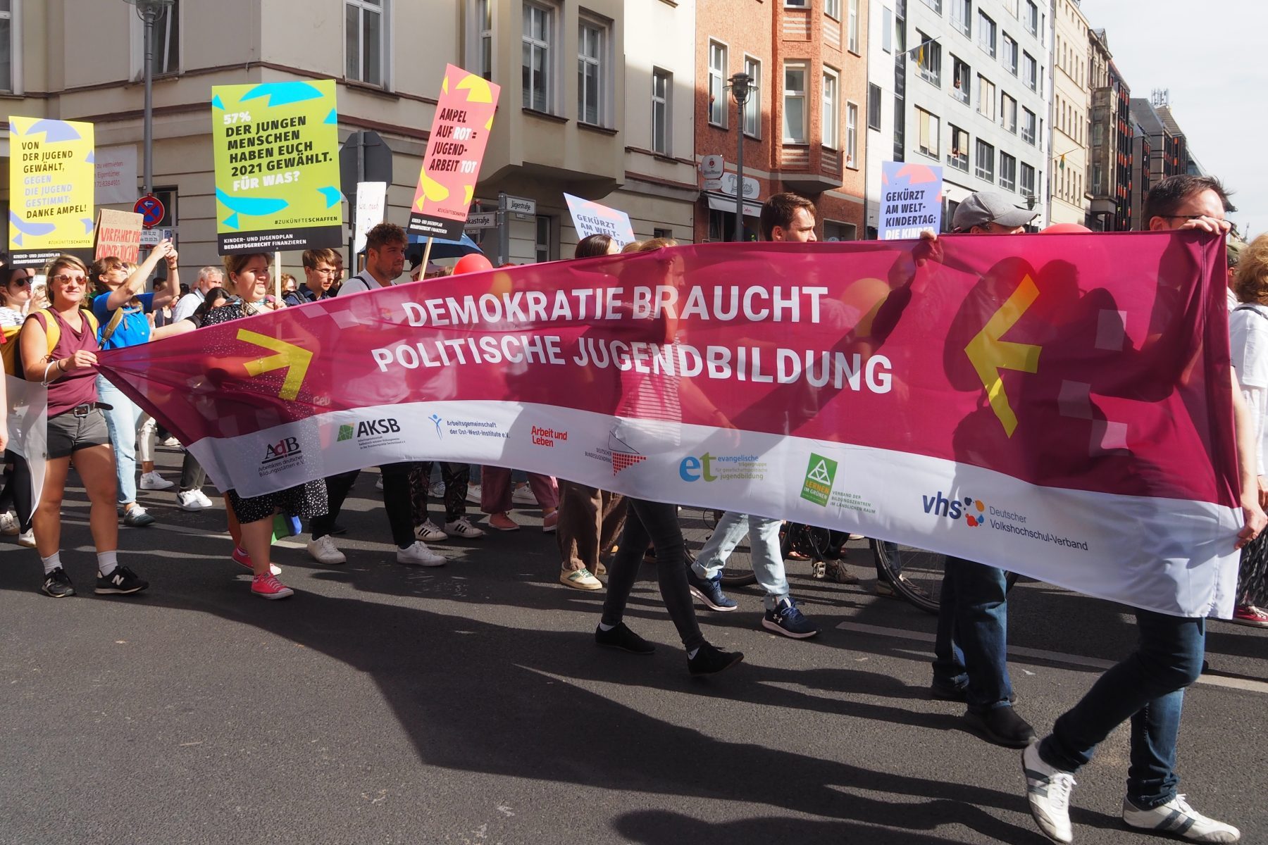 Nadja Bilstein, Fachbereichsleiterin Politische Akademie Haus Neuland e. V. und Vorsitzende der AdB-Fachkommission Erwachsenenbildung sagte nach der Demonstration: „Mich hat vor allem die große Vielfalt der Teilnehmer*innen beeindruckt, die verdeutlicht, wie weiteichend die Einschnitte für die Lebenswelten der Jugendlichen sind – alle Bereiche sind betroffen.“ Strukturen, die einmal weggespart würden, seien nur schwer wiederaufzubauen.