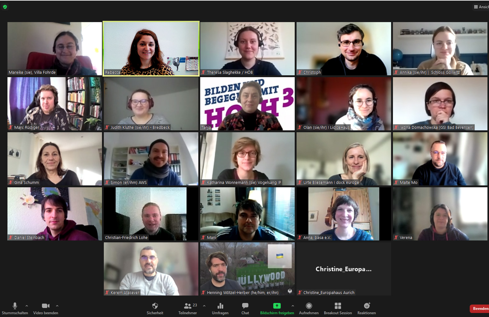 Da es auch in 2022 ein paar neue Jugendbildungsreferent*innen zu begrüßen gab, begann die letzte ZAT in der aktuellen Laufzeit des Programms zunächst mit einem Kennenlernen. Tanja Berger von Hoch Drei e. V. in Potsdam gestaltete diesen Part u. a. mit Fragen nach der geographischen Verortung und den Helden der Kindheit aller Teilnehmenden.