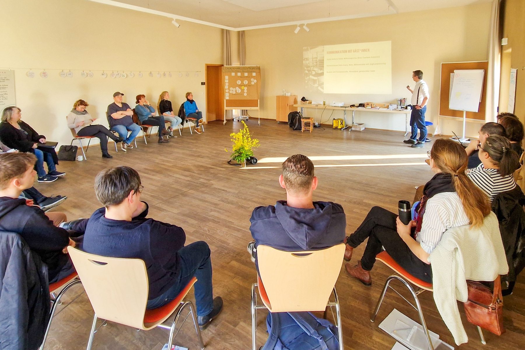 Ein weiterer Höhepunkt war der Ausflug nach Brandenburg, der von einem informativen Stadtrundgang begleitet wurde. Diese Exkursion bot den Teilnehmenden die Möglichkeit, nicht nur die Umgebung kennenzulernen, sondern auch in direkten Kontakt mit lokalen Initiativen und Projekten im Bereich der nachhaltigen Ernährung zu treten – z. B. bei einem Besuch der bohnarchie, Rösterei & Café mit nachhaltigem Specialty Coffee. Der Rundgang durch die Stadt bot einen Blick hinter die Kulissen und inspirierte zu neuen Ideen und Ansätzen für die Umsetzung von Nachhaltigkeit in der Praxis.