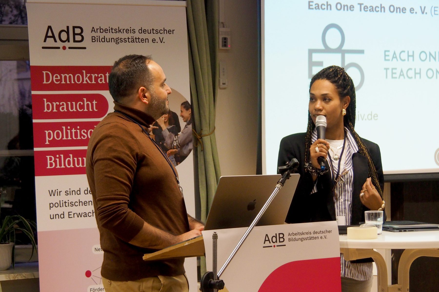 Bereits im Vorfeld der AdB-Mitgliederversammlung hatten zwei Organisationen einen Antrag auf Mitgliedschaft gestellt. Nach eingehender Beratung empfahl der Vorstand der Mitgliederversammlung, Each One Teach One e. V. (EOTO), Berlin, als ordentliches Mitglied sowie das PLING Kollektiv, Hamburg, als assoziiertes Mitglied aufzunehmen. Die assoziierte Mitgliedschaft ist auf drei Jahre begrenzt. In dieser Zeit kann das noch sehr junge PLING Kollektiv seine Strukturen und sein pädagogisches Konzept der politischen Bildung weiterentwickeln und eine ordentliche Mitgliedschaft beantragen.