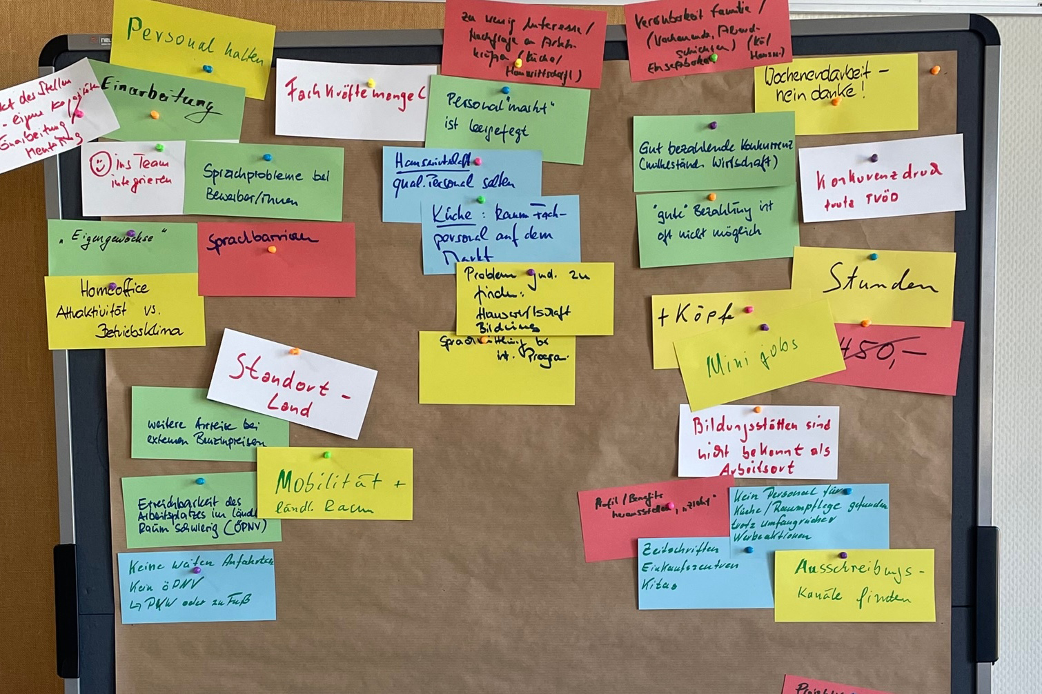 Der Schwerpunkt der Frühjahrssitzung lag auf dem Thema Personalgewinnung. Vor allem in den Bereichen Hauswirtschaft und Haustechnik ist es schwer, qualifiziertes Personal zu finden. Dass Bildungsstätten als Arbeitgeber*innen nicht bekannt genug sind, wurde als ein Problem identifiziert. Auch die Personalgewinnung in den Bereichen Verwaltung und Pädagogik stellt eine Herausforderung dar. Die zielgruppengerechte Formulierung von Stellenanzeigen und deren Veröffentlichung auf den richtigen Kanälen können dabei helfen, mehr Bewerber*innen anzusprechen. Hier zeigte sich, wie wichtig der kollegiale Austausch ist.