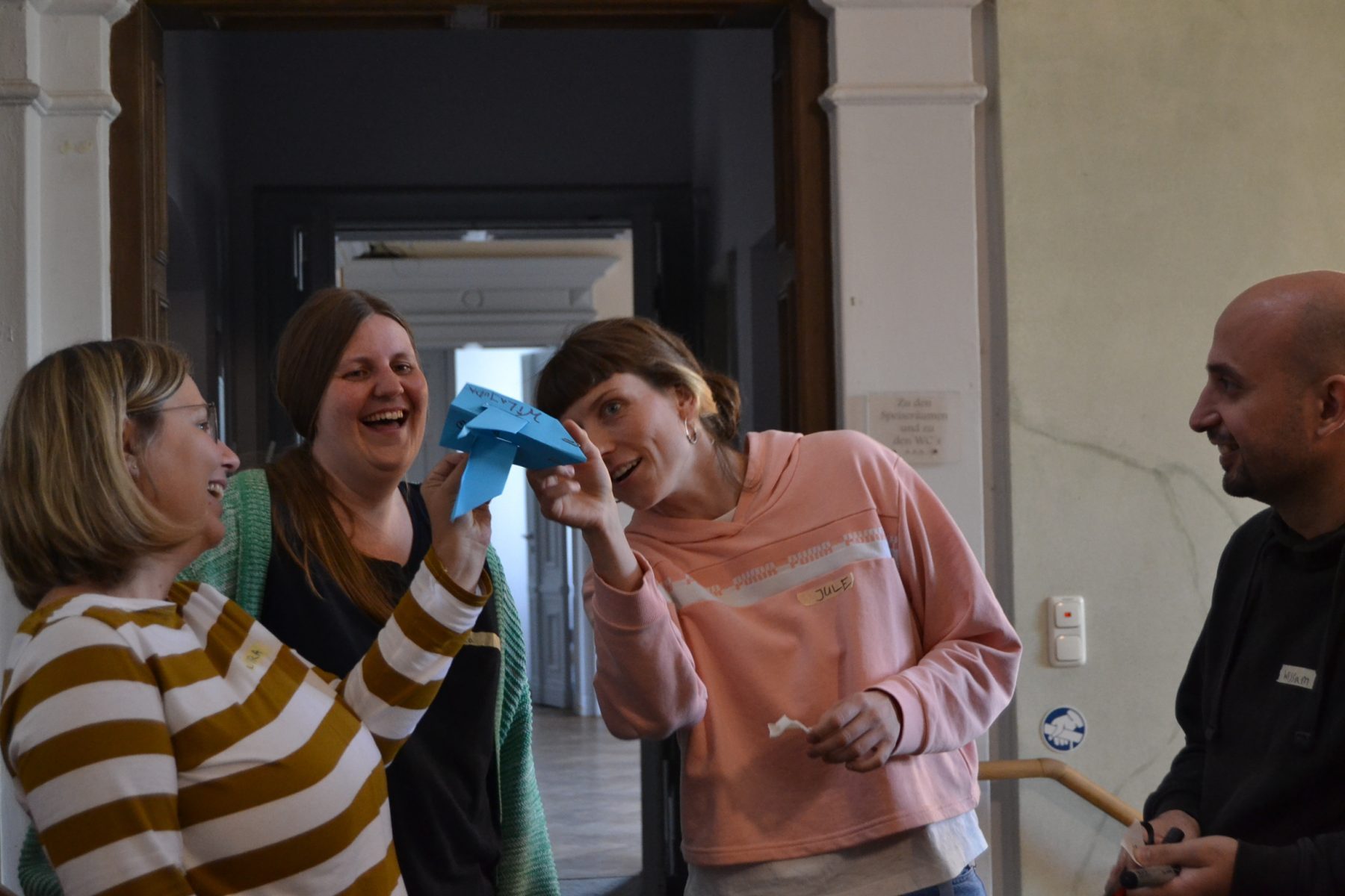Das Modul 2 „Ideen – Konzepte – Methodenentwicklung“ konnte dann gemeinsam mit Dana Meyer (freie Referentin für politische Bildung) in Präsenz vom 25. bis 26. September 2023 in der Europäische Jugendbildungsstätte Magdeburg/Bildungsnetzwerk Magdeburg gGmbH realisiert werden. Hier gab es zum einen viel Input zum Thema Methodenauswahl und -entwicklung, aber auch Raum zur gemeinsamen Erprobung und Entwicklung bzw. Anpassung und Diskussion von Methodenideen für die eigene Praxis. Letztlich konnte hier aber nur ein Eindruck vermittelt werden, da die zwei halben Tage wie im Flug vergingen. Wie gut, dass die Fortbildungsreihe zum Abschluss mit dem Modul 5 im nächsten Jahr nochmals den Raum für die konkreten Praxisansätze bietet.