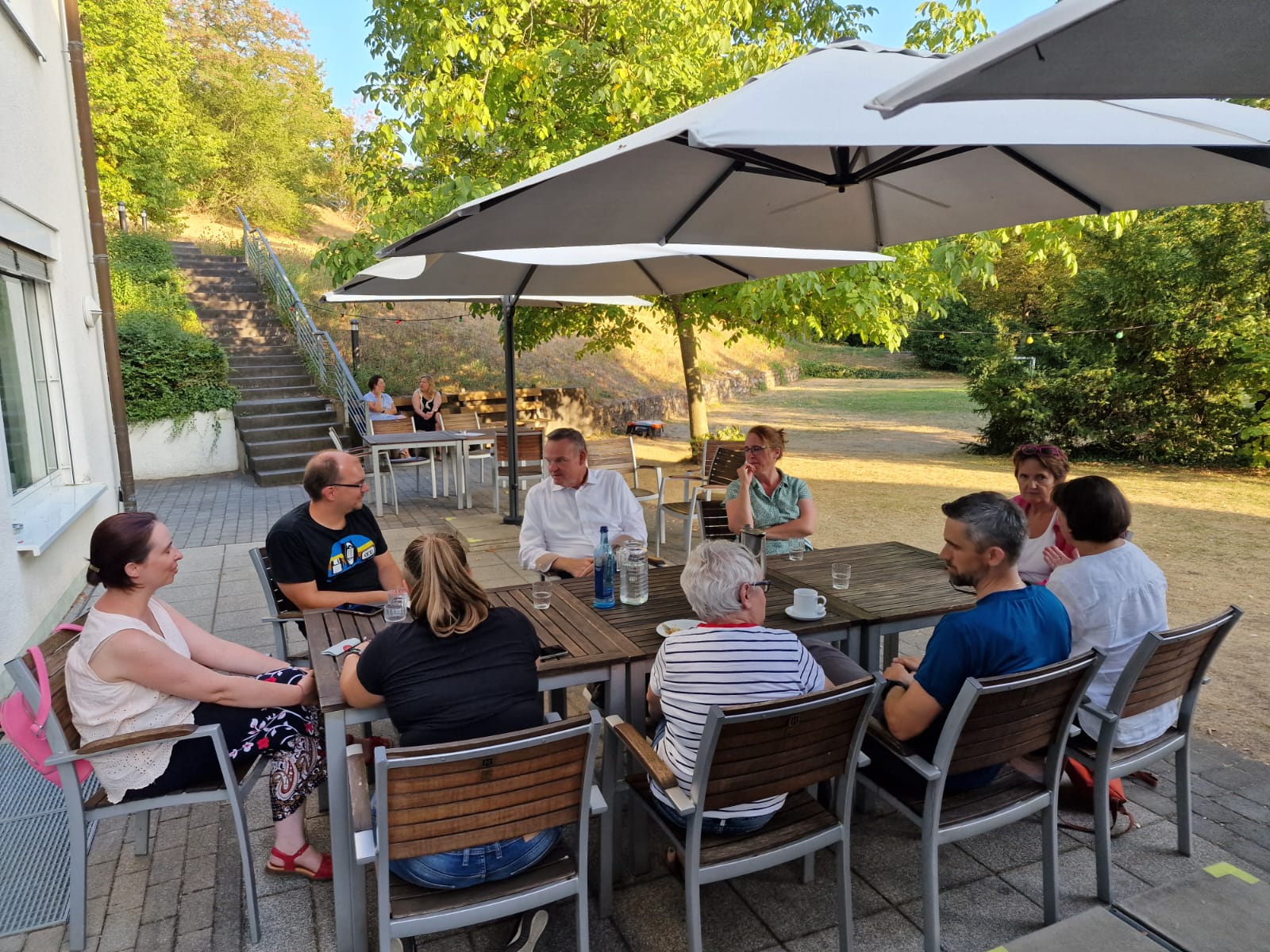 Genug Neugier um nachzufragen, dachte sich Titus Möllenbeck, Direktor des Hauses am Maiberg und selbst mehrmals als Betreuer im Programm tätig. Beim ersten Zoom-Call wurde klar, dass sich viele ein Wiedersehen nach langer Zeit wünschten. Es folgten weitere Zoom-Calls, ein Seminarprogramm und ein Finanzierungsplan wurden erstellt und schließlich ein Treffen mit 14 Personen im Haus am Maiberg in Heppenheim über vier Tage Ende August 2022 realisiert. Alumni aus Polen, Bulgarien, Slowenien, Tschechien, Ungarn, Estland und Griechenland sowie aus Deutschland hatten sich angesagt, zwei kurzfristige Absagen wegen Corona haben alle bedauert.